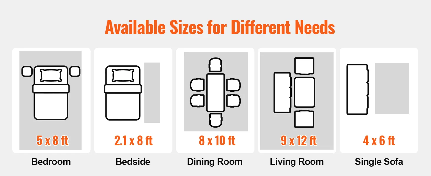 Dit vloerkleed is verkrijgbaar in verschillende maten en is geschikt voor slaapkamers, eetkamers, woonkamers en andere ruimtes. Ongeacht het type vloer, het zorgt voor een comfortabele en stabiele ervaring en voldoet gemakkelijk aan uw woonwensen.