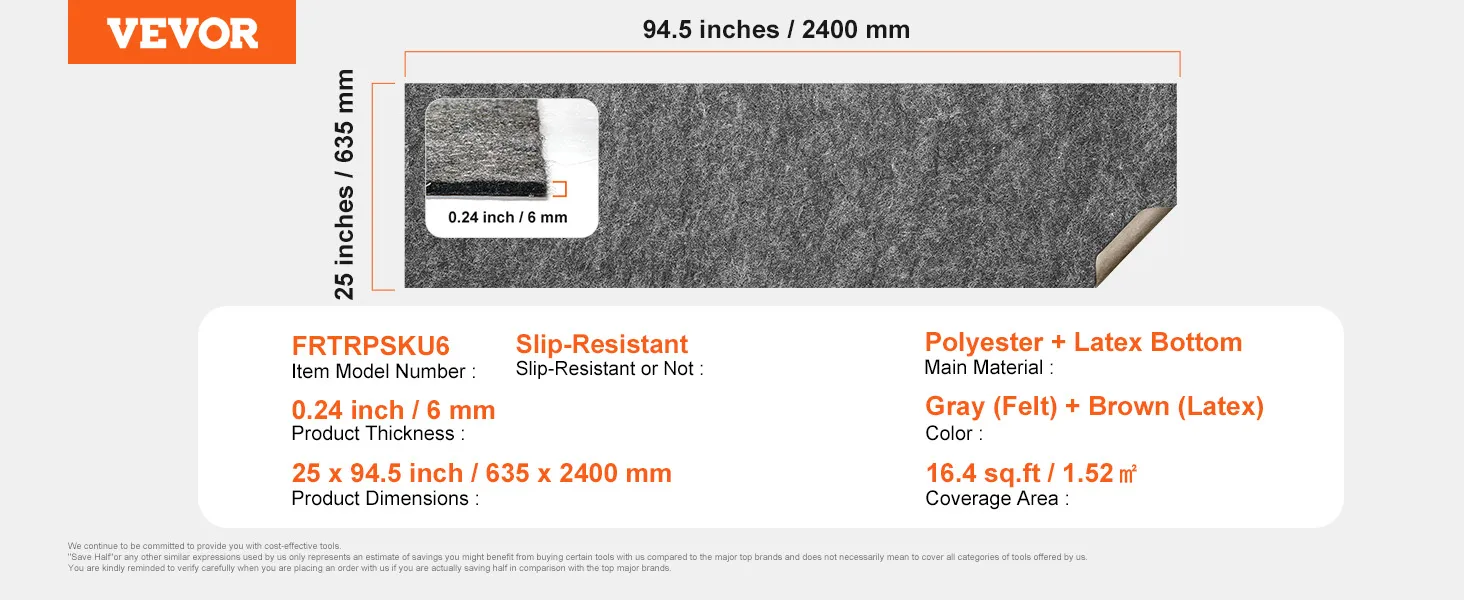 Perfect Coverage: With a coverage area of 16.4 sq.ft / 1.52㎡, this rug cushion easily meets the carpet needs of your room, significantly enhancing your home environment. Large area protection increases comfort, creating a cozy experience for spacious areas.