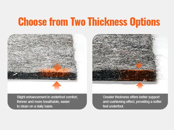 Choose between two thicknesses: 0.47'' for ultimate comfort, ideal for sensitive individuals, or 0.24'' for a lightweight, breathable, and anti-slip option.