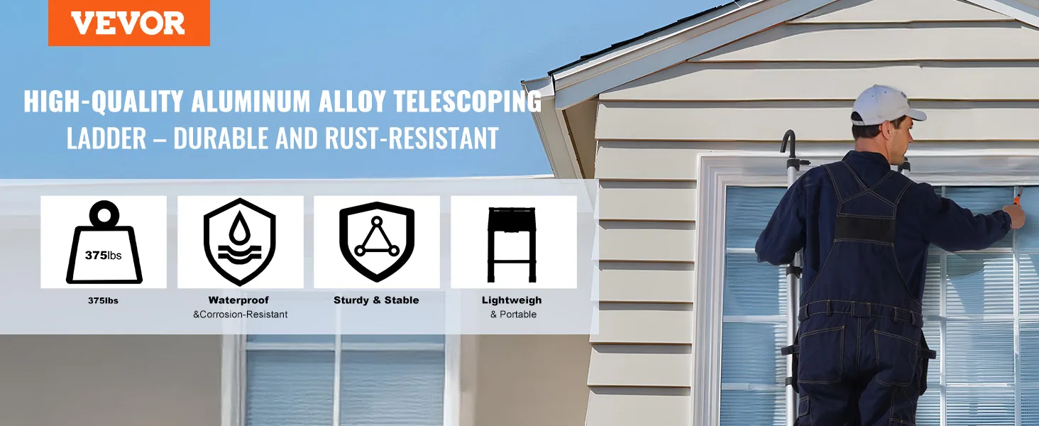 Deze hoogwaardige telescopische ladder beschikt over stevige en stabiele prestaties met een hoog draagvermogen en waterdichte en corrosiebestendige eigenschappen voor een langere levensduur.