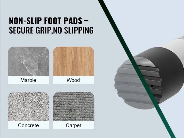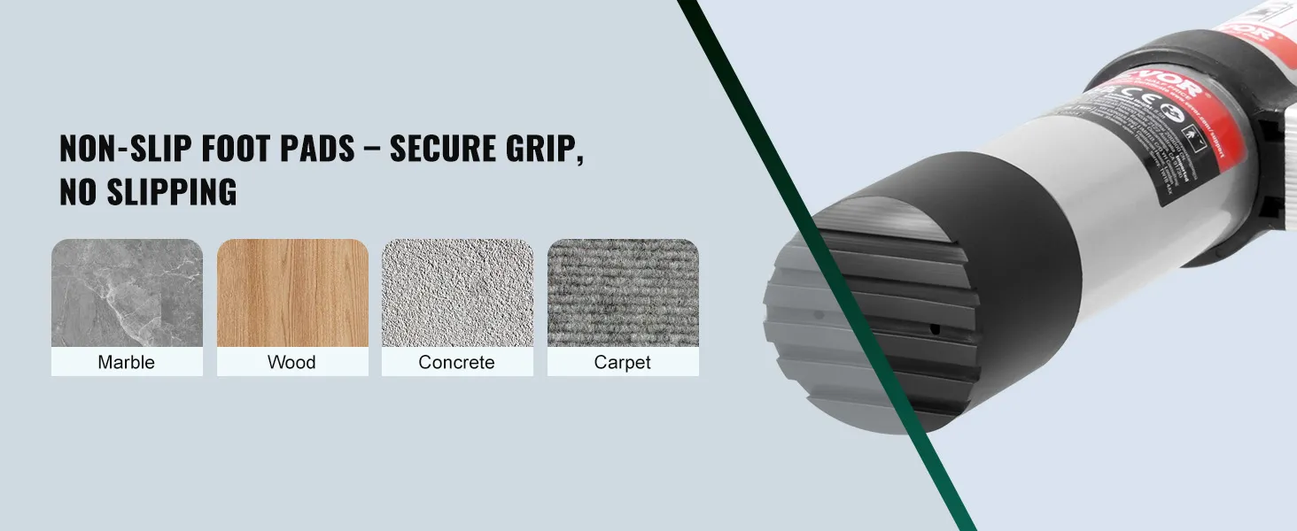 Om uw veiligheid te garanderen en krassen op de vloer te voorkomen, is de bodem voorzien van voetkussentjes die voor een uitstekende grip zorgen en geschikt zijn voor diverse ondergronden zoals marmer, hout, beton en tapijten.