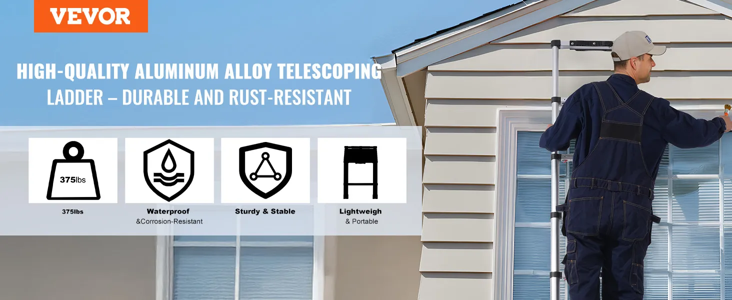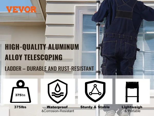 Deze hoogwaardige telescopische ladder beschikt over stevige en stabiele prestaties met een hoog draagvermogen en waterdichte en corrosiebestendige eigenschappen voor een langere levensduur.