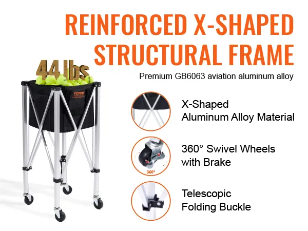 Deze tennisbalmandkar is bijzonder licht van gewicht, waardoor hij gemakkelijk te verplaatsen is. Hoewel lichtheid een kenmerk blijft van de VEVOR tennisbalkar, wiebelt of schudt hij niet tijdens gebruik. Het robuuste aluminiumlegeringframe biedt sterke ondersteuning zonder extra gewicht toe te voegen. Dit maakt transport eenvoudig, zelfs wanneer hij volledig is geladen met tennisballen. Of u nu een professionele of recreatieve speler bent, het lichtgewicht ontwerp van deze kar zorgt voor moeiteloze manoeuvreerbaarheid. Hij is perfect voor spelers die zich willen concentreren op hun spel zonder te worden belast door apparatuur.
