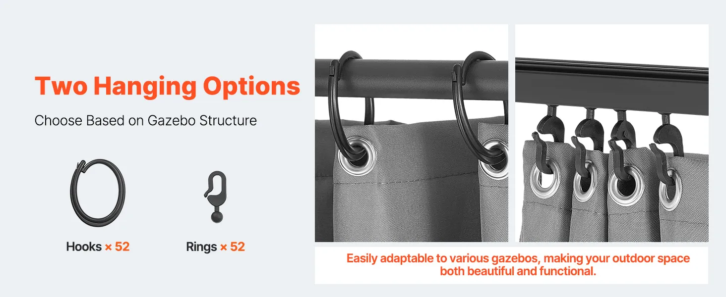 Dual-Sided Zipper Design: The gazebo replacement curtains features dual-sided zipper that enables effortless opening and closing from both sides, offering great convenience for easy access in and out of the gazebo.
