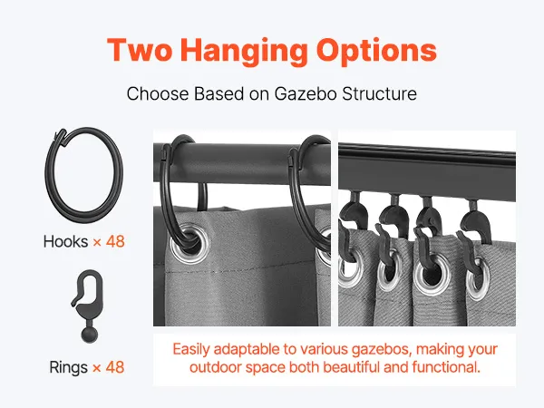Choose your preferred hanging method to enhance your outdoor space's aesthetics and functionality.