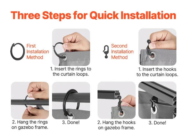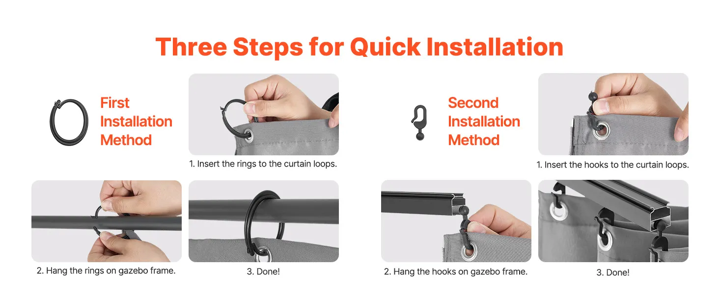 Dual-Sided Zipper Design: The gazebo privacy curtains features dual-sided zipper design that enables easy opening and closing from both inside and outside the gazebo, providing great convenience for seamless access.