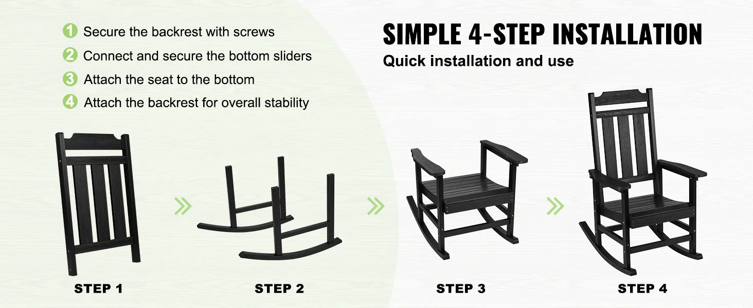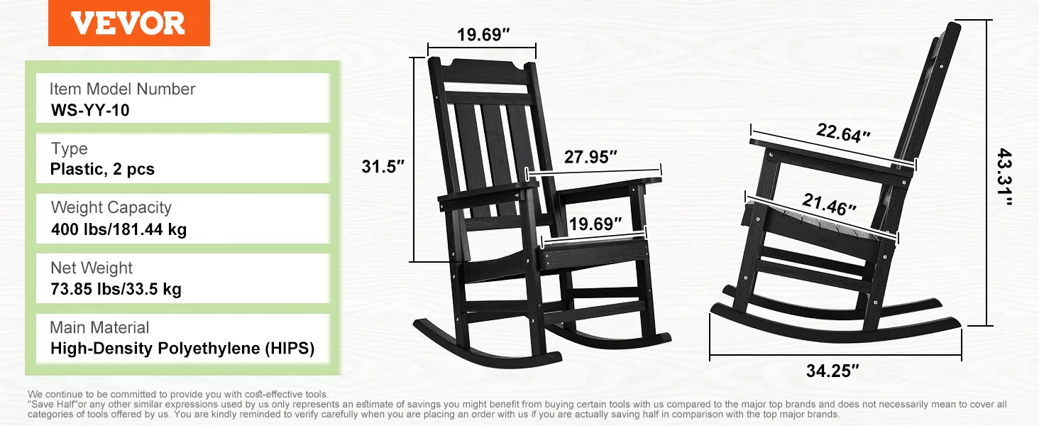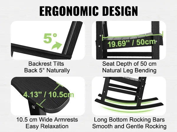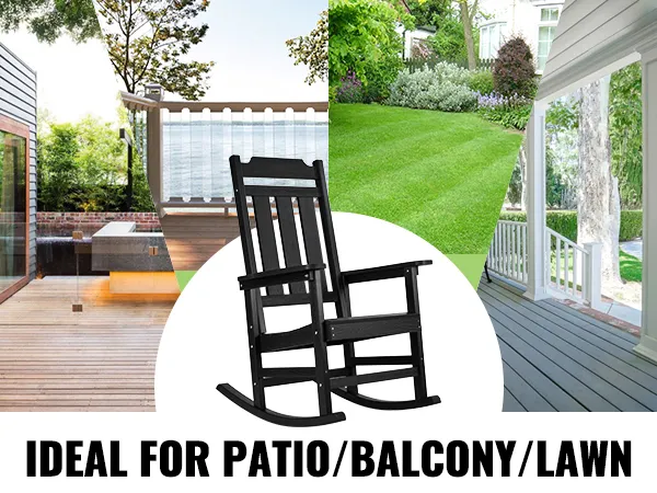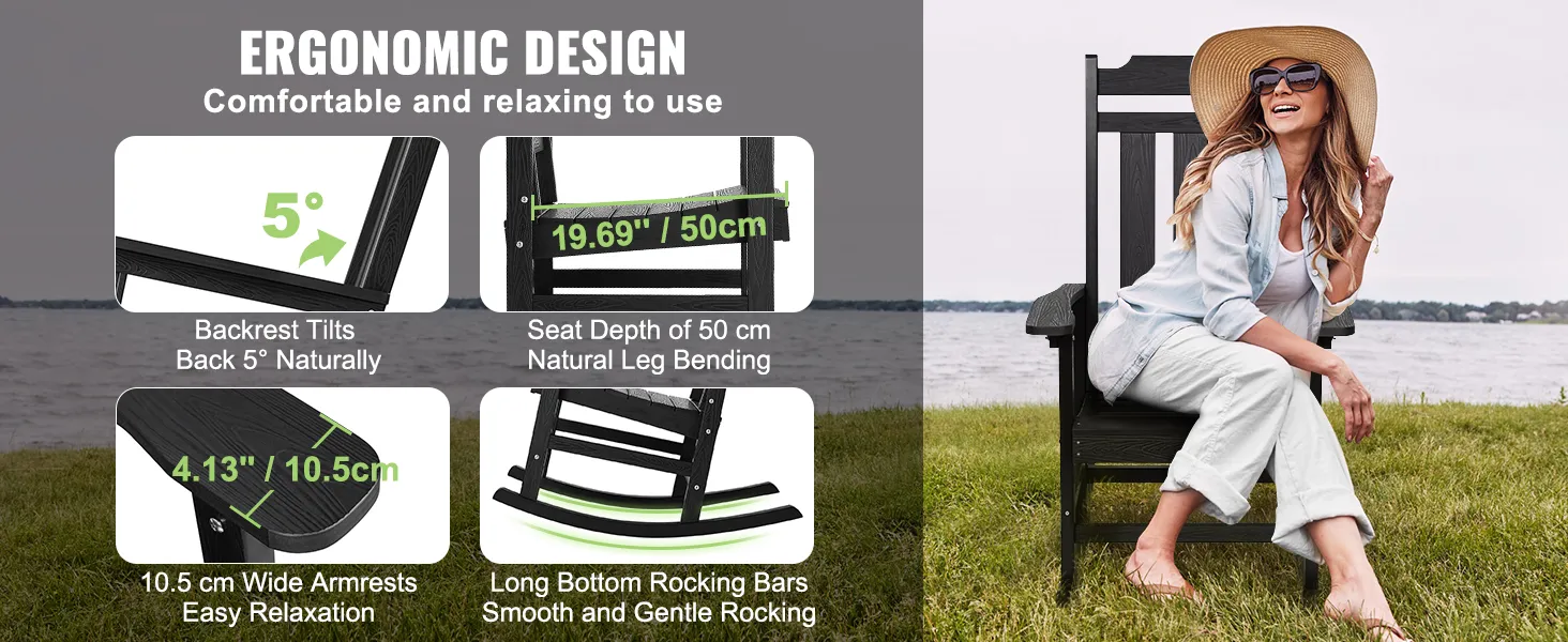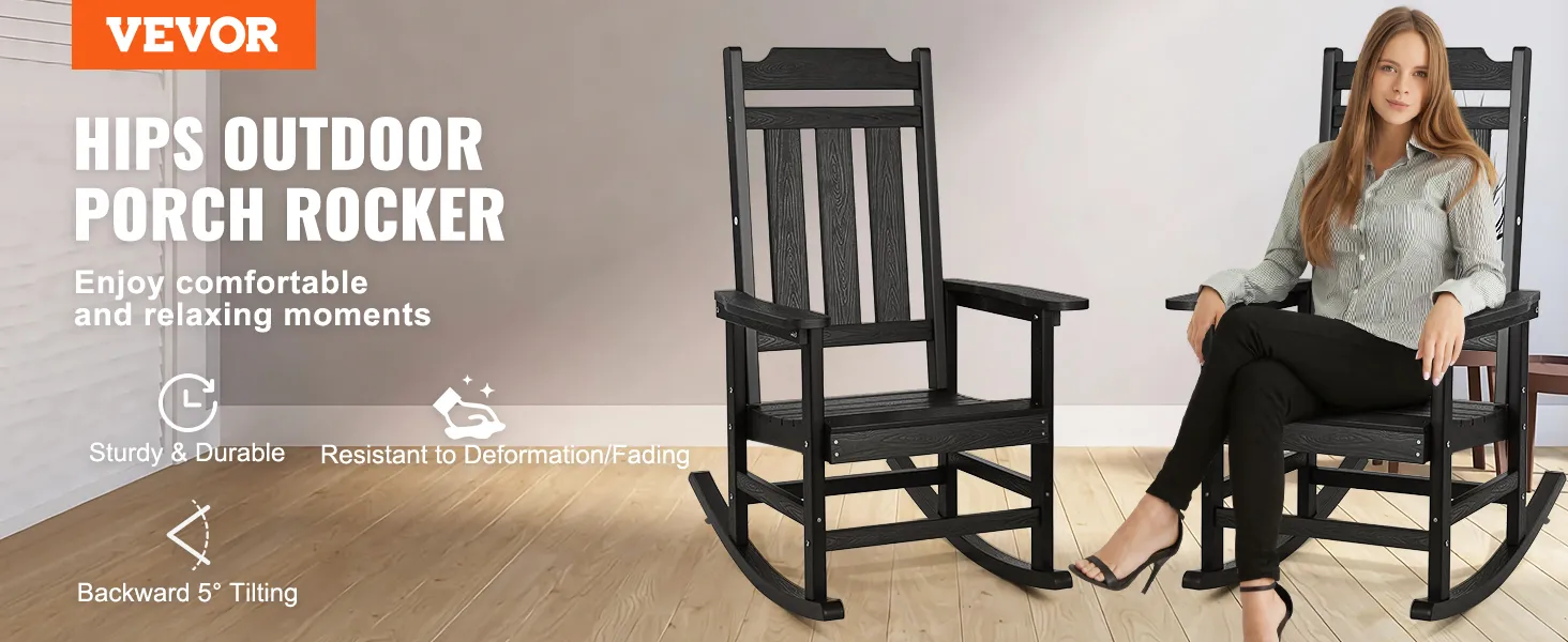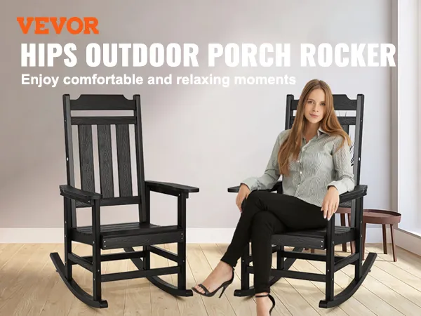 VEVOR 2-pack schommelstoel voor op de veranda, HIPS schommelstoel voor buiten, schommelstoel voor op het terras met hoge rugleuning en soepele armleuningen, ondersteunt tot 180 kg, voor tuin, balkon en veranda, zwart