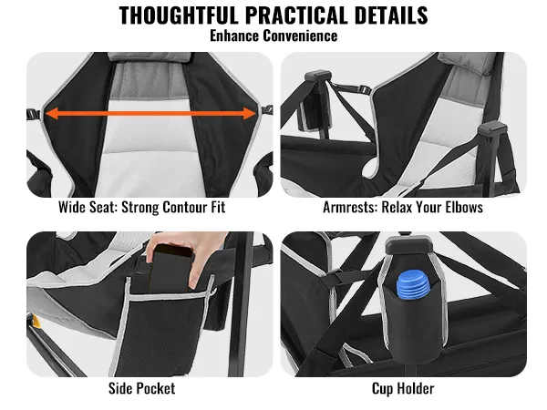 Gemakkelijk op te bergen en te dragen: deze draagbare campingstoel kan binnen enkele seconden worden opgevouwen met een snelontgrendelingspin en wordt geleverd met een draagtas voor probleemloos transport. Lichtgewicht en gemakkelijk op te bergen, perfect voor kampeertrips, stranddagen of picknicks. Opvouwen is een fluitje van een cent, dus je kunt hem inpakken en gaan wanneer je maar wilt.