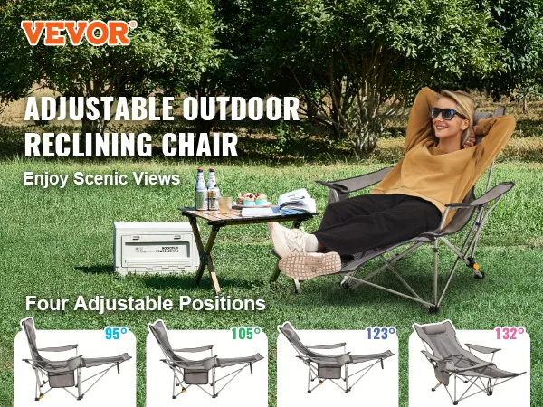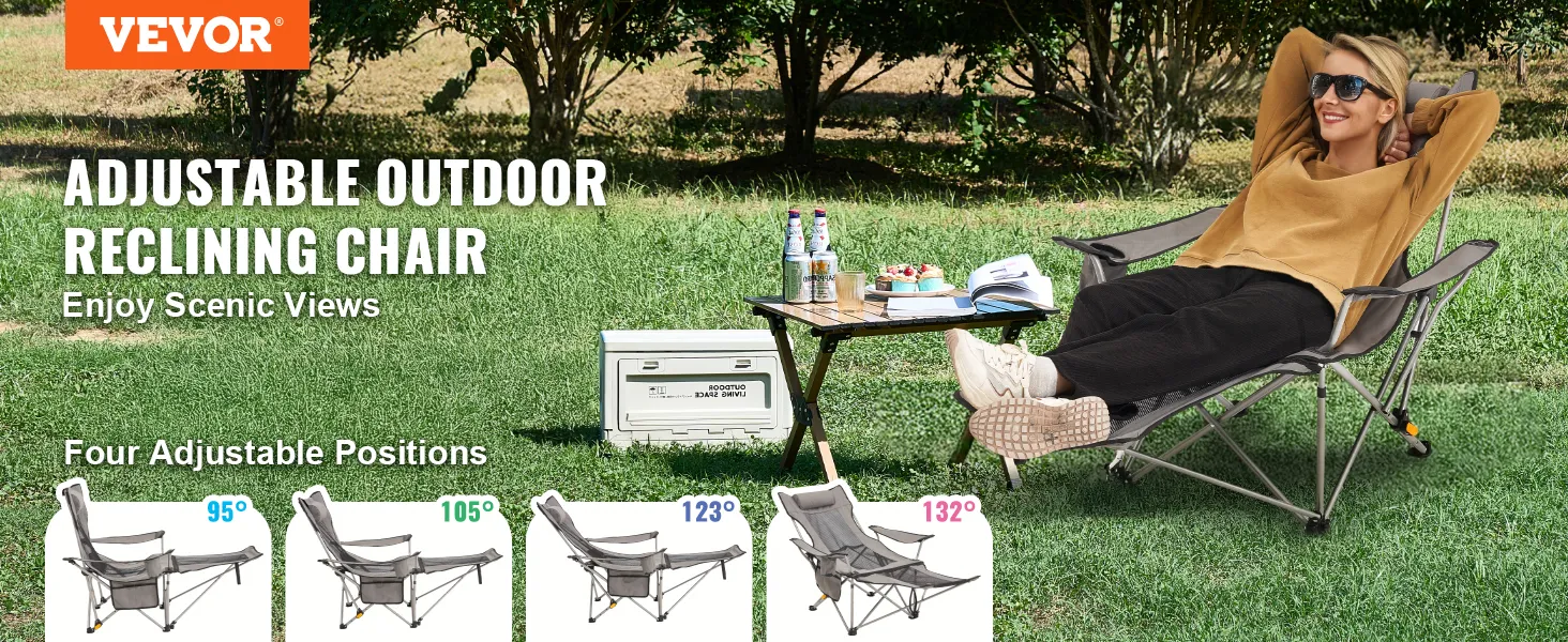 Comfortabel ontwerp: deze verstelbare campingstoel heeft een verlengde zitting voor meer stabiliteit. De vier verstelbare hoogte-instellingen zorgen voor een betere rugsteun, zodat u een comfortabele houding kunt vinden om te lezen, een dutje te doen of van het uitzicht te genieten.