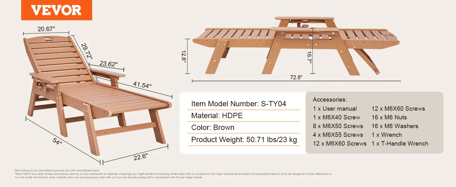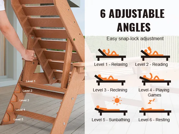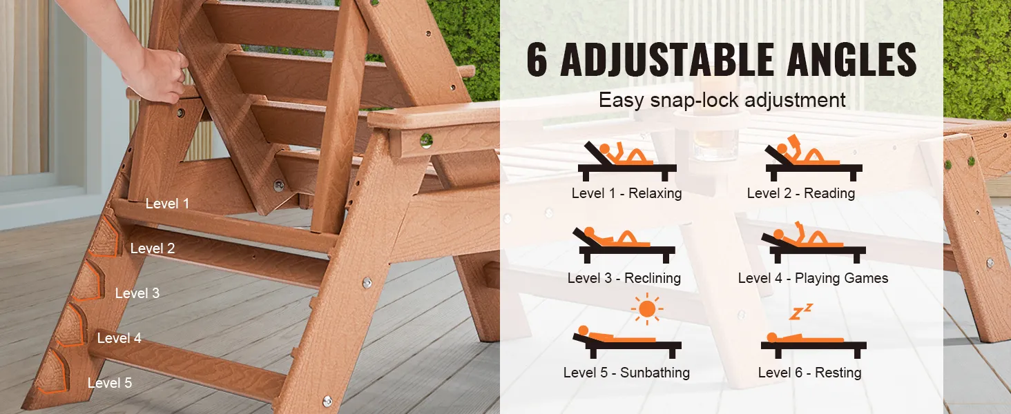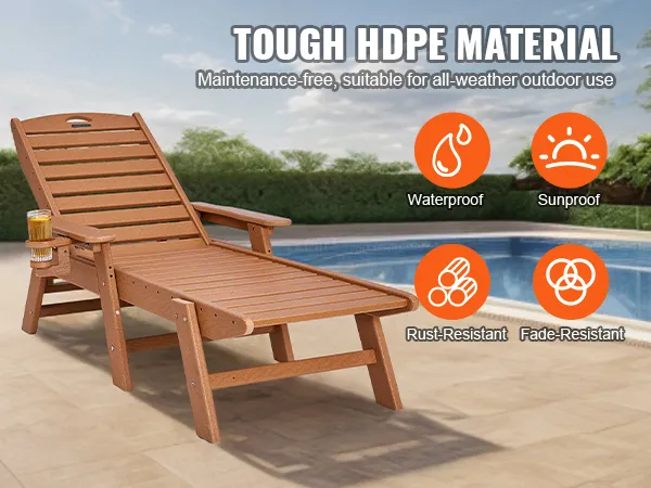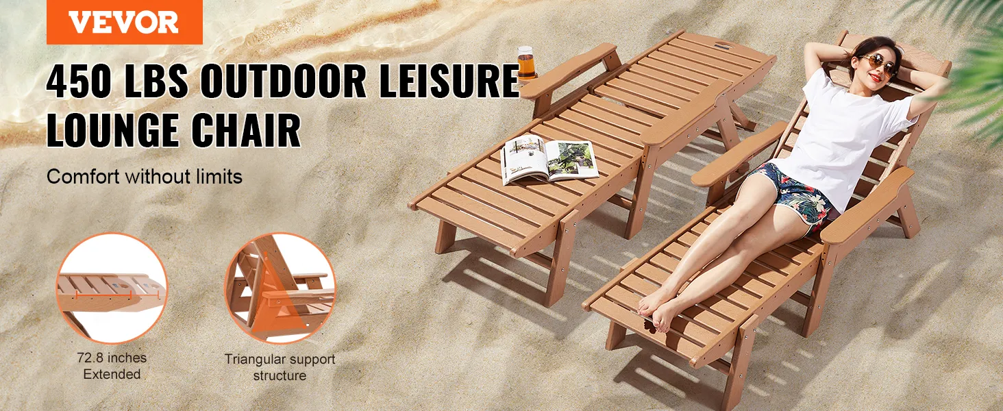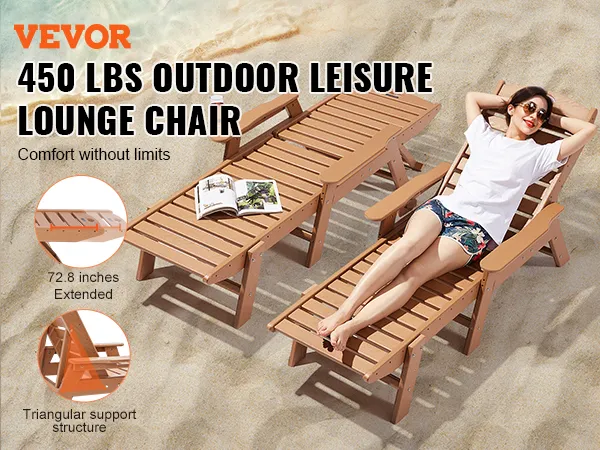 Stevig en hoog draagvermogen: deze ligstoel is gemaakt van dik HDPE-materiaal en heeft een sterk driehoekig steunontwerp. Het is extreem robuust en duurzaam. Hij kan maximaal 204 kg (450 lbs) dragen, waardoor hij stabiel en veilig blijft, zodat u met een gerust hart kunt ontspannen.
