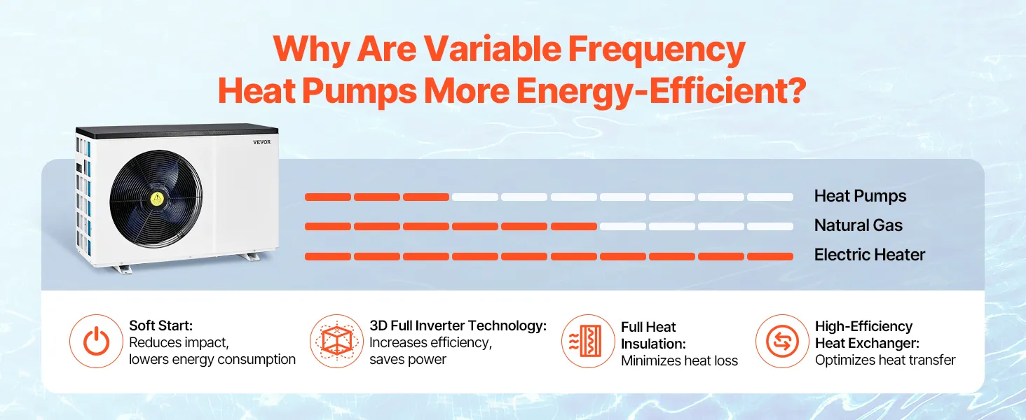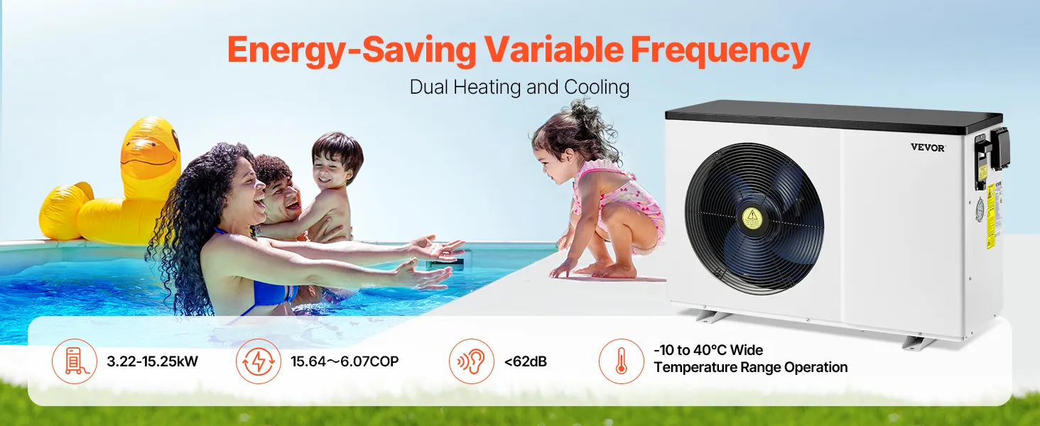VEVOR Electric Pool Heat Pump, 3.22-15.25kW Heating Capacity, Energy-Saving Variable Frequency Pool Heaters for 30-60m³Above Ground Pools, Heating and Cooling Pool Water Heater AC220-240V 50Hz