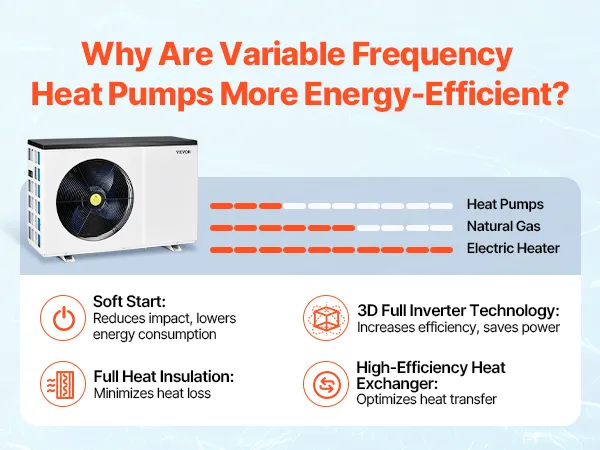 Quiet Operation: Equipped with inverter technology and multiple noise-reducing technologies, this heat pump operates at a noise level of <62dB (at 1 meter), ensuring a quiet experience that won't disrupt your daily activities.