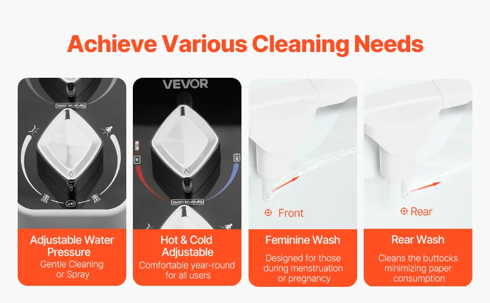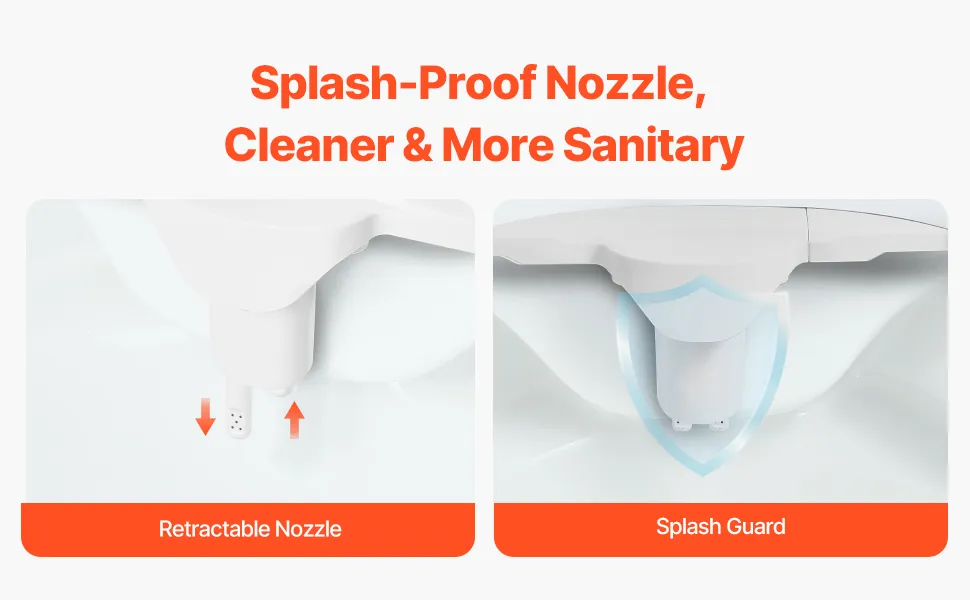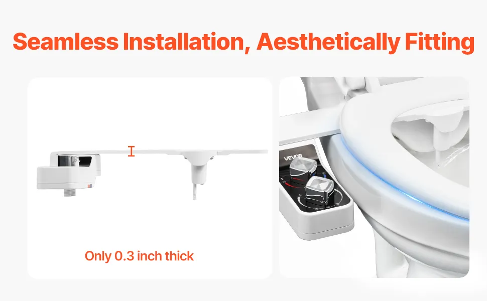 Naadloze installatie: Met een dunne dikte van 0,3 inch (7 mm) wordt deze bidetbevestiging voor het toilet vlak geïnstalleerd zonder spleten, waardoor deze gemakkelijk in de meeste toiletten past en een aanvulling vormt op moderne badkamerstijlen.