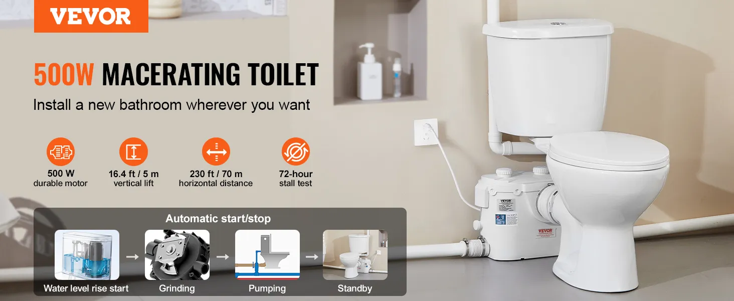 Met een krachtige toiletpomp voor wateronttrekking en -levering kunt u nu een toilet, douche of wasmachine installeren in ruimtes zoals kelders die geen vooraf geïnstalleerde afvoerleidingen hebben, zonder dat u zich zorgen hoeft te maken over loodgieterswerk of structurele problemen.