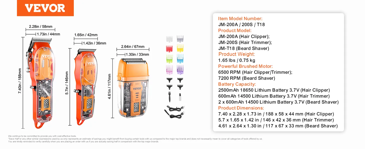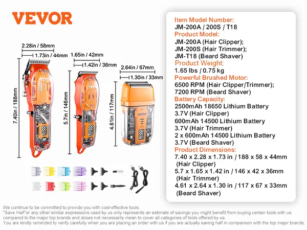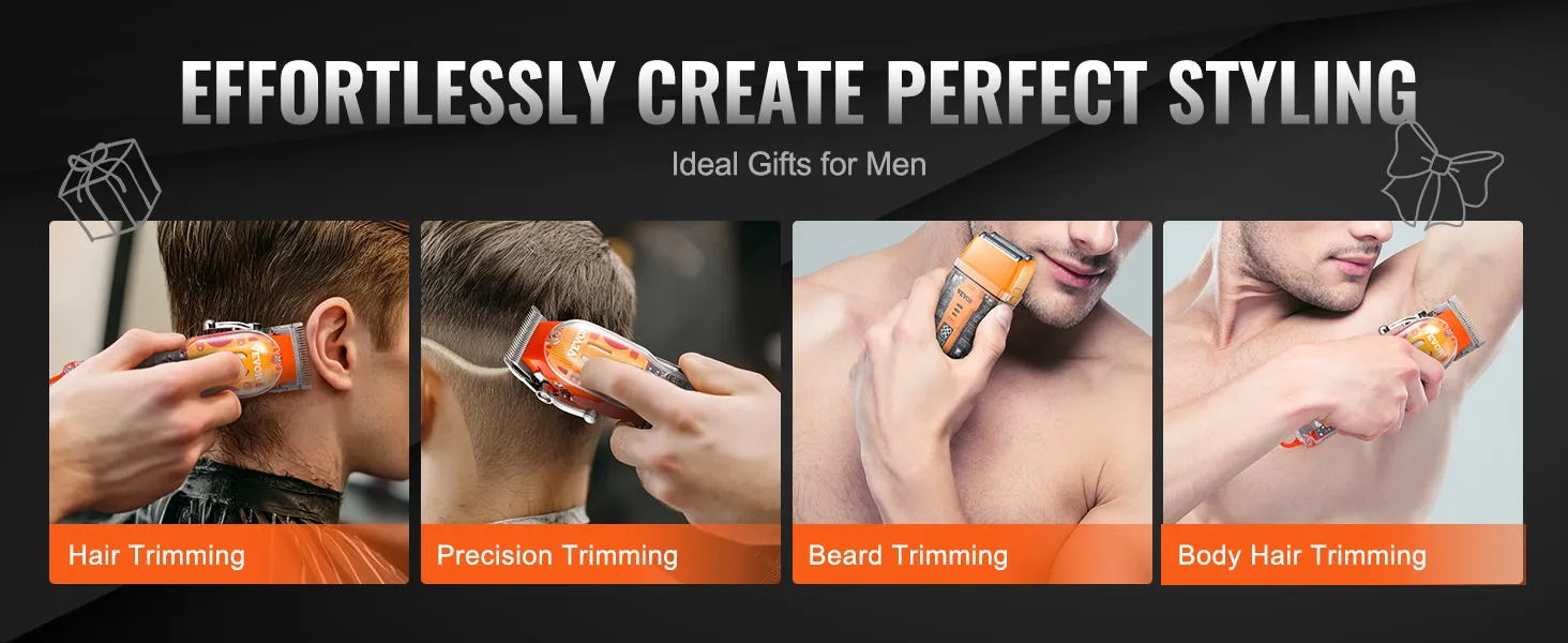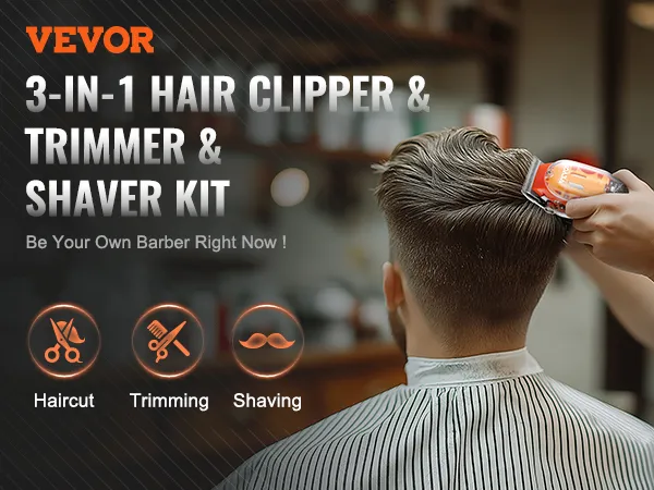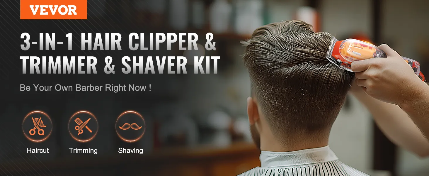 3-in-1 Professional Set: Meet all your grooming needs with VEVOR 3-in-1 men's hair clipper kit that includes a hair clipper, beard trimmer, and razor shaver. Whether you're cutting hair, trimming bread, or shaving, this man's hair cutting kit helps you achieve salon-quality styles at home.