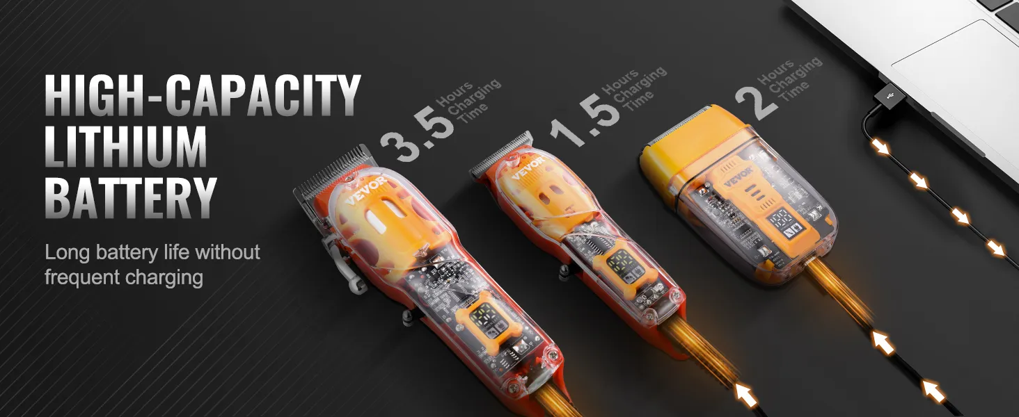 With a convenient USB charging port, you can easily connect to a USB adapter, laptop, or car charger. And the built-in large-capacity lithium battery ensures consistent performance and hassle-free grooming experience without frequent charging.