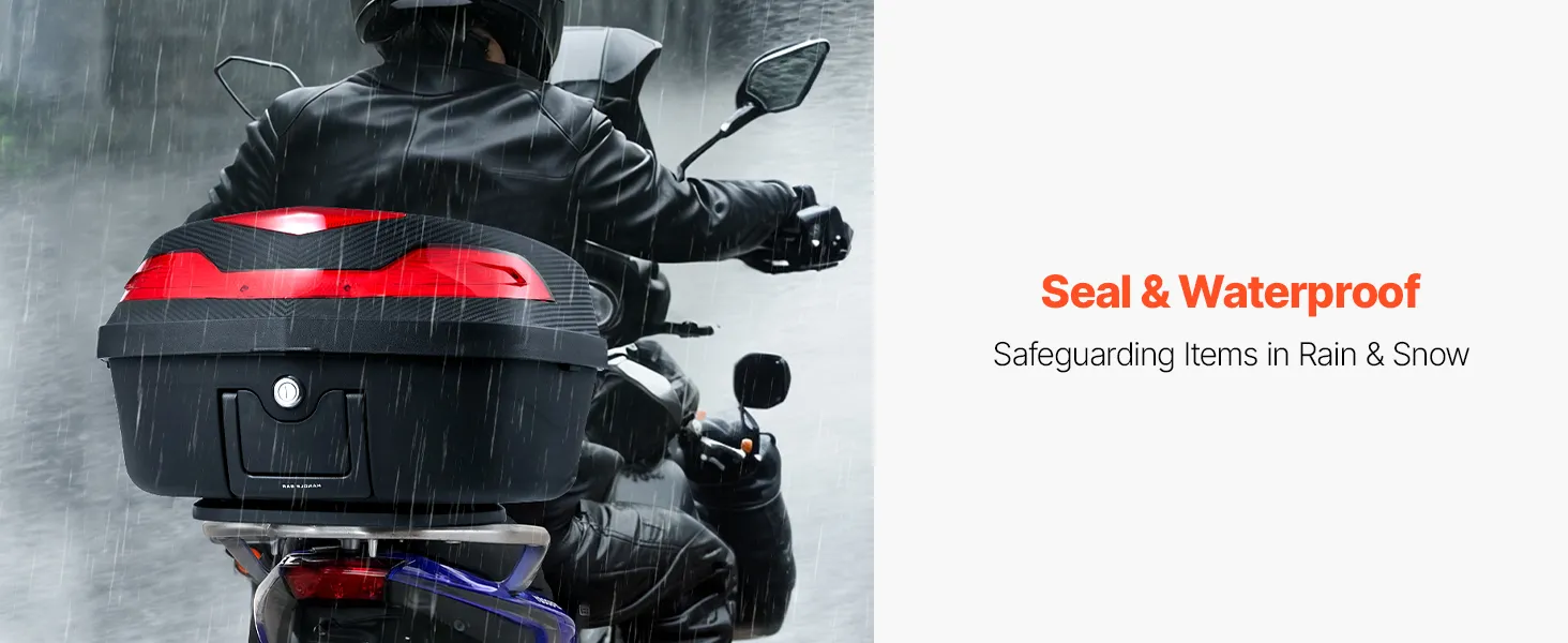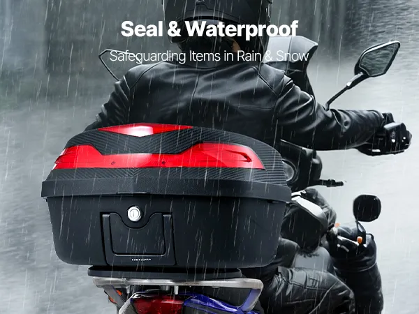Thanks to the sealed design, Items inside the motorcycle top box stay dry and secure, so you can ride in any weather without concern.
