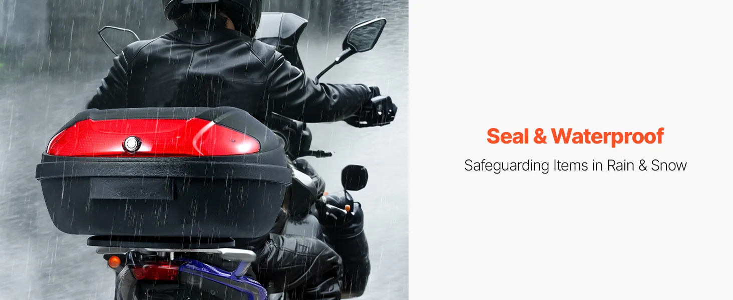Dankzij de waterdichte constructie blijven de spullen in de motorkoffer droog en veilig, zodat je onder alle weersomstandigheden zorgeloos kunt rijden.