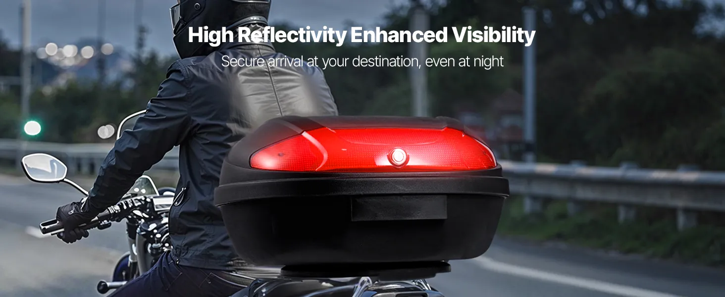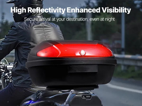 De reflecterende platen op de motorkoffer zorgen ervoor dat je beter zichtbaar bent voor andere weggebruikers en daardoor vooral 's nachts veiliger onderweg bent.