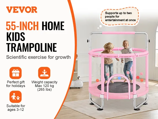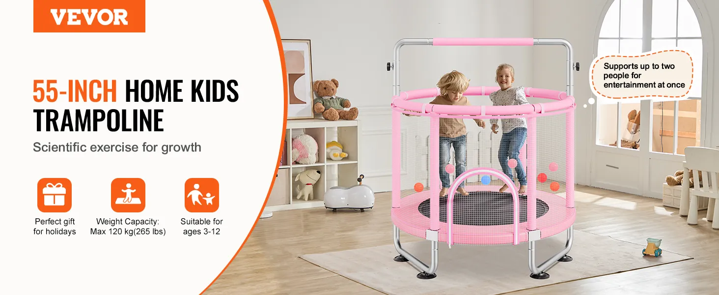 VEVOR Kindertrampoline Mini Leisure Trampoline 147 cm voor peuters Verstelbaar met Veiligheidsnet & Basketbalring, Verjaardagscadeau Kerstspeelgoed voor kinderen vanaf 3 jaar Roze