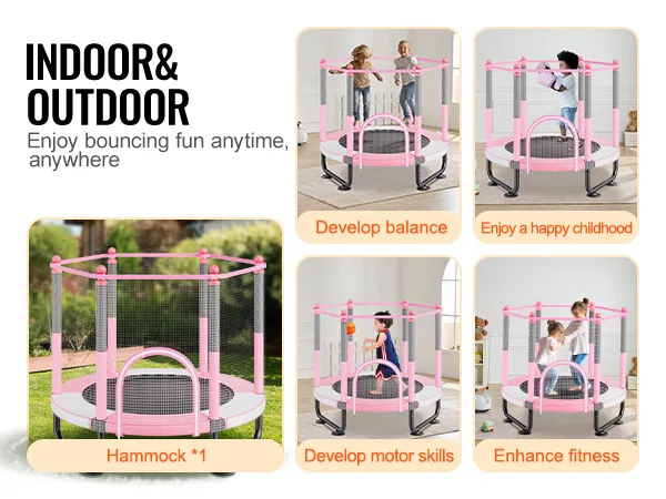 Deze thuistrampoline voor peuters kan zowel binnen als buiten gebruikt worden. Het biedt kinderen meer beweging om kracht en uithoudingsvermogen te ontwikkelen, terwijl speelse activiteiten worden aangemoedigd die de flexibiliteit en coördinatie verbeteren.