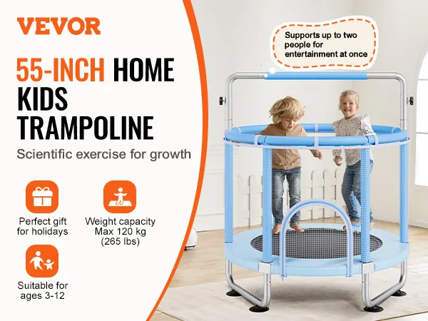Ontworpen voor kinderen: laat de natuurlijke energie van uw kinderen los met het beste gezinsactiviteitenspel. De kindertrampoline met veiligheidsnet is speciaal ontworpen voor kinderen en biedt ruimte aan twee springers tegelijk. Het geeft kinderen thuis meer beweging, vergroot hun kracht en uithoudingsvermogen en stimuleert leuke activiteiten die hun flexibiliteit en coördinatie verbeteren.