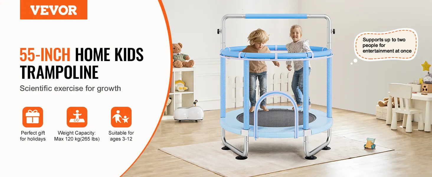 VEVOR Kindertrampoline Mini Leisure Trampoline 147 cm voor peuters met veiligheidsnet en basketbalring, verjaardagscadeau kerstspeelgoed voor kinderen vanaf 3 jaar blauw