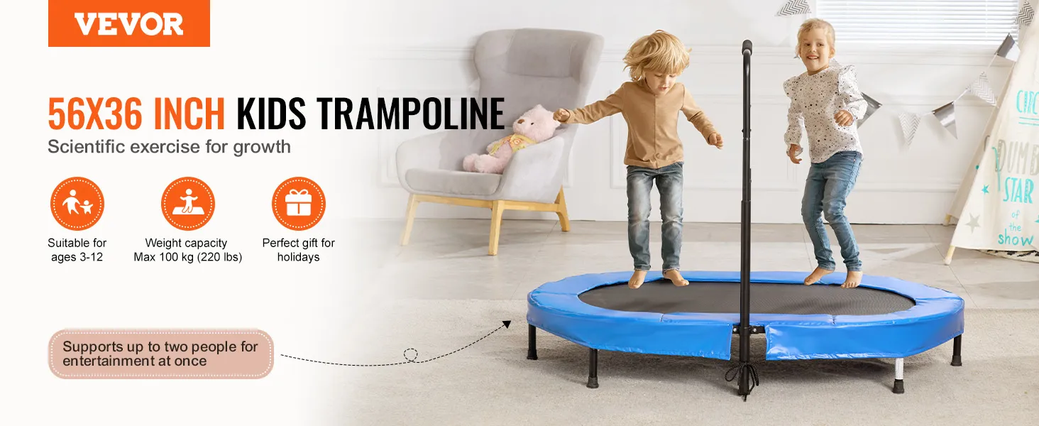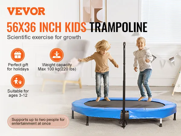Ontworpen voor kinderen: laat de natuurlijke energie van uw kinderen los met het beste gezinsactiviteitenspel. Deze ovale kindertrampoline is speciaal ontworpen voor kinderen en biedt ruimte aan twee springers tegelijk. Het geeft kinderen thuis meer beweging, verbetert hun kracht en uithoudingsvermogen en stimuleert leuke activiteiten die hun flexibiliteit en coördinatie verbeteren.