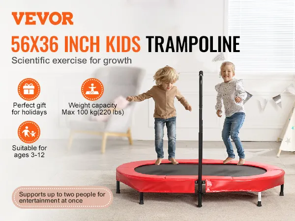 Ontworpen voor kinderen: laat de natuurlijke energie van uw kinderen los met het beste gezinsactiviteitenspel. Deze ovale kindertrampoline is speciaal ontworpen voor kinderen en biedt ruimte aan twee springers tegelijk. Het geeft kinderen thuis meer beweging, verbetert hun kracht en uithoudingsvermogen en stimuleert leuke activiteiten die hun flexibiliteit en coördinatie verbeteren.