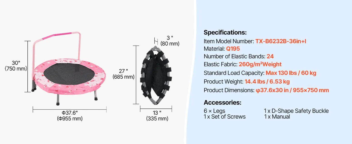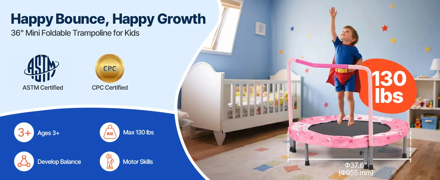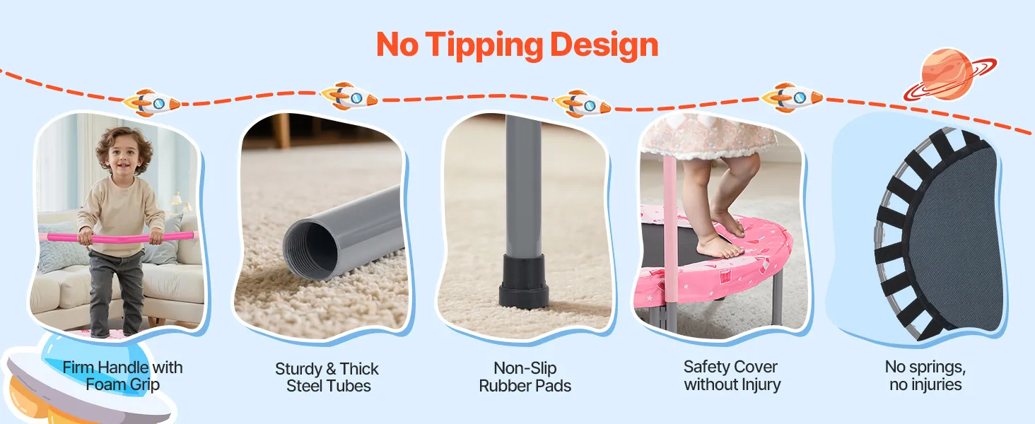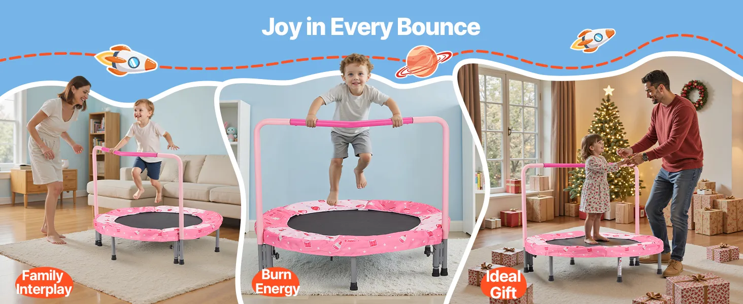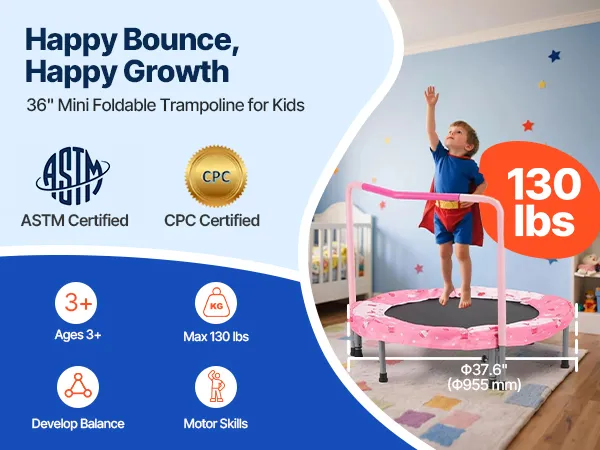 Deze thuistrampoline voor peuters kan zowel binnen als buiten gebruikt worden. Het biedt kinderen meer beweging om kracht en uithoudingsvermogen te ontwikkelen, terwijl speelse activiteiten worden aangemoedigd die de flexibiliteit en coördinatie verbeteren.