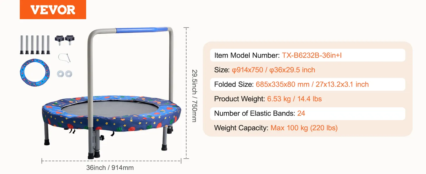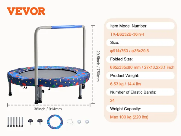 VEVOR Kindertrampoline Buitentrampoline 91,44 cm Opvouwbare trampoline met handgreep, Rebounder trampoline Tuintrampoline voor peuters, Verjaardagscadeau voor kinderen vanaf 3 jaar Draagvermogen 100 kg Blauw