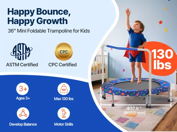 Deze thuistrampoline voor peuters kan zowel binnen als buiten gebruikt worden. Het biedt kinderen meer beweging om kracht en uithoudingsvermogen te ontwikkelen, terwijl speelse activiteiten worden aangemoedigd die de flexibiliteit en coördinatie verbeteren.
