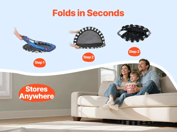 Onze minitrampoline voor baby's en peuters is dankzij het opvouwbare ontwerp gemakkelijk te vervoeren, zodat kinderen overal kunnen stuiteren. Hij kan onder de banken of in de kofferbak worden opgeborgen om ruimte te besparen.