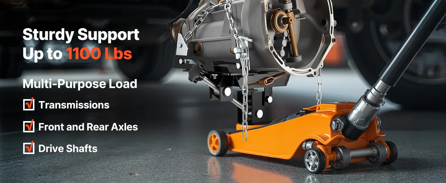 Draagvermogen van 500 kg: Onze autotransmissie-krikadapter is gemaakt van robuust staal en ondersteunt tot 500 kg. Hij is geschikt voor transmissies, aandrijfassen en assen en kan veilig en stevig worden gerepareerd.