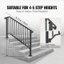 Our outdoor stair railing for concrete provides extra protection for the elderly, children, and disabled struggling to use stairs. The flexible height allows the exterior handrail for steps to fit 4 or 5 stairs, meeting your different needs. With sturdy wrought iron material and powder-coated surface, the railing is rustproof and easy to clean. This metal handrail for outdoor steps is ideal for gardens, residential buildings, porches, hotels, etc.