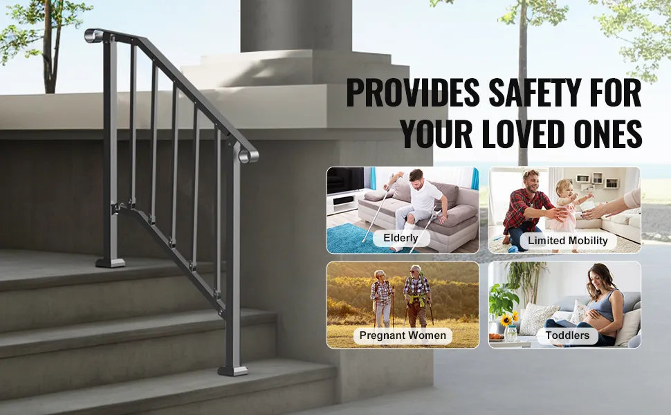 Veelzijdig: Deze leuning is ontworpen voor buitentrappen en kan worden geïnstalleerd op beton, hout, tegels, marmer en andere vaste oppervlakken. De unieke stijl past bij verschillende soorten trappen en verbetert zowel de functionaliteit als het uiterlijk.