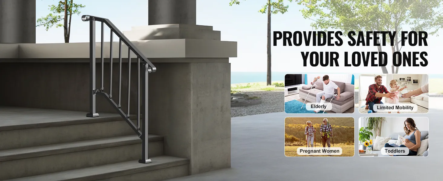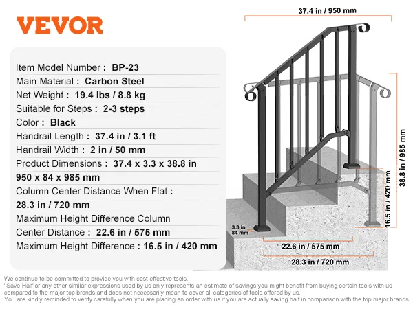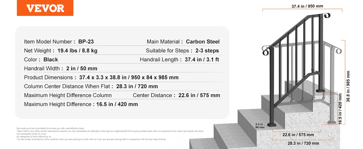 220 lbs Robust Load Capacity: This stair handrail is built for durability, providing lasting safety for both elderly individuals and children. Its thickened grip ensures comfort, making it safe and easy to use for everyone, including pregnant women and the elderly. IMPORTANT TIPS:Before purchasing, please measure the maximum center distance and height difference of your stairs to ensure they match the handrail dimensions. Otherwise, the handrail may not be installable!!!!!!