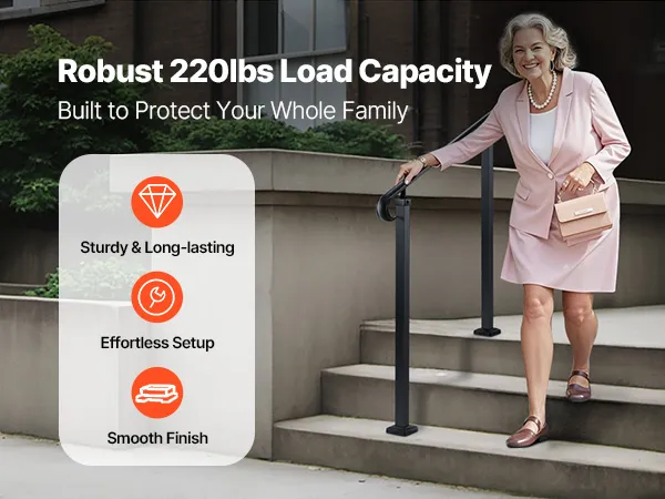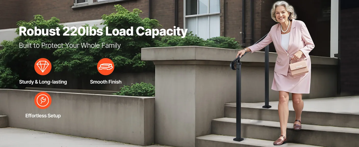 Draagvermogen van 100 kg: Deze duurzame trapleuning voor buiten biedt veiligheid voor ouderen en zwangere vrouwen met een verdikte handgreep voor extra comfort. LET OP: Meet vóór aankoop de hart-op-hart afstand en het hoogteverschil van uw trap om de compatibiliteit te garanderen.