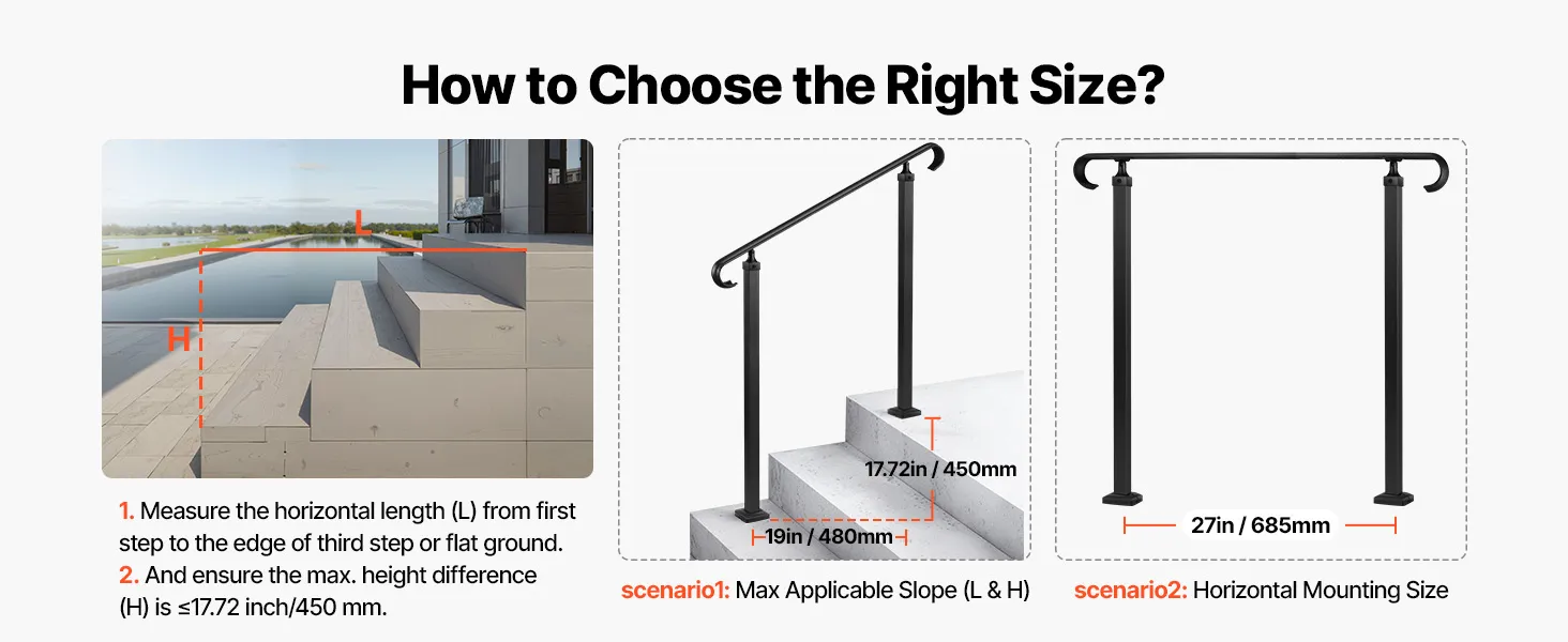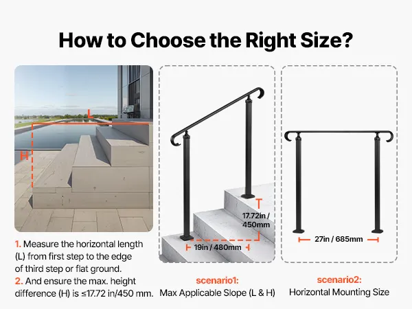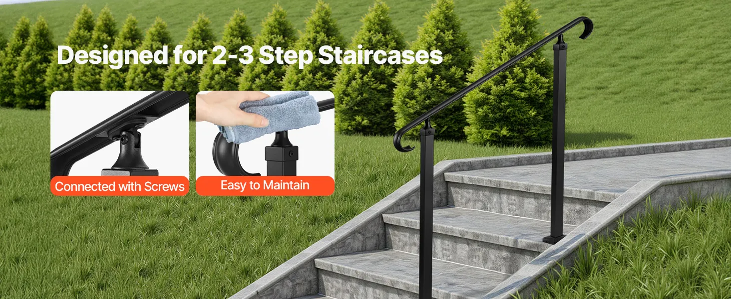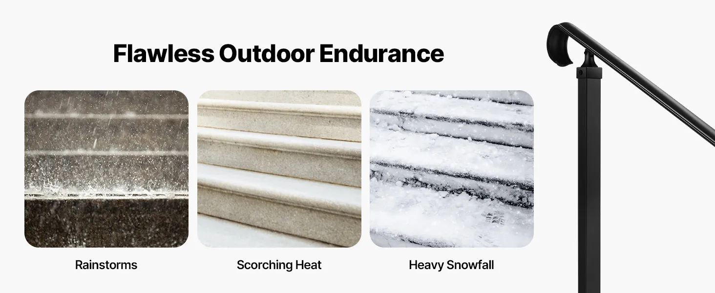 Veelzijdig: Deze buitentrapleuning kan worden geïnstalleerd op beton, hout, tegels, marmer en andere harde oppervlakken. De unieke stijl past bij diverse soorten trappen en verbetert zowel de functionaliteit als het uiterlijk.