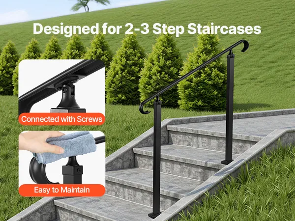 VEVOR Buitentrapleuning, 2-3 treden, in hoogte verstelbaar, overgangsleuning van koolstofstaal met montageset, buitenleuning voor treden, betonnen of houten trappen, veranda, matzwart