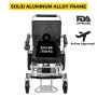 Deze elektrische rolstoel is gemaakt van een hoogwaardige aluminiumlegering van vliegtuigkwaliteit, waardoor hij lichter en duurzamer is. Met een gewicht van 28,4 kg en een draagvermogen van 150 kg is hij betrouwbaar en voelt hij niet lomp aan.