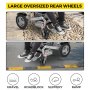 De rolstoel heeft 4 robuuste wielen: voorwielen 20,3 cm en achterwielen 31,7 cm met een maximaal klimvermogen van 15° en een maximale hindernishoogte van 15 cm, die soepel rijden op oneffen buitenoppervlakken in gras, grind of sneeuw mogelijk maken.