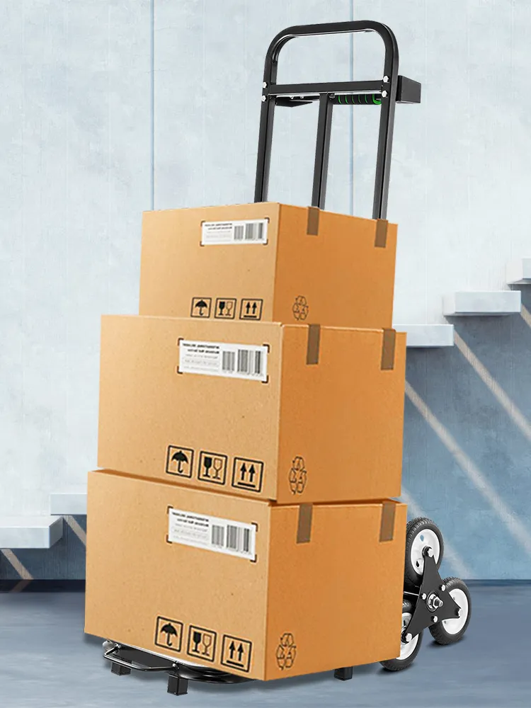 Hier bieden we u een gloednieuwe draagbare klimtrolley, die is voorzien van een paar driehoekige wielen en twee back-upwielen. Met een inklapbare structuur is het gemakkelijk te dragen. Dit product zorgt voor een stabiele en soepele werking wanneer u een zware last de trap op en af draagt.
