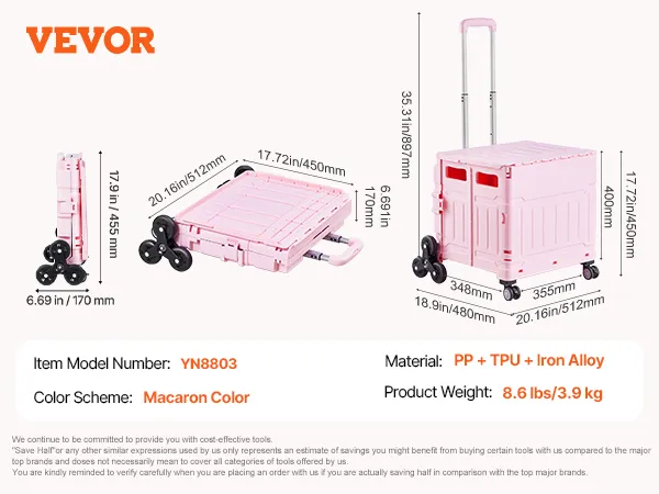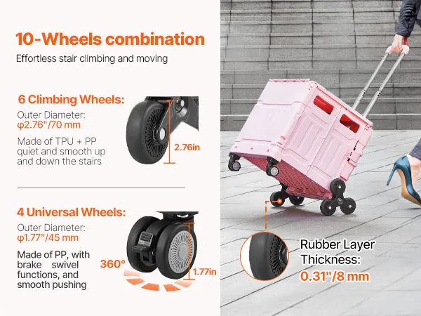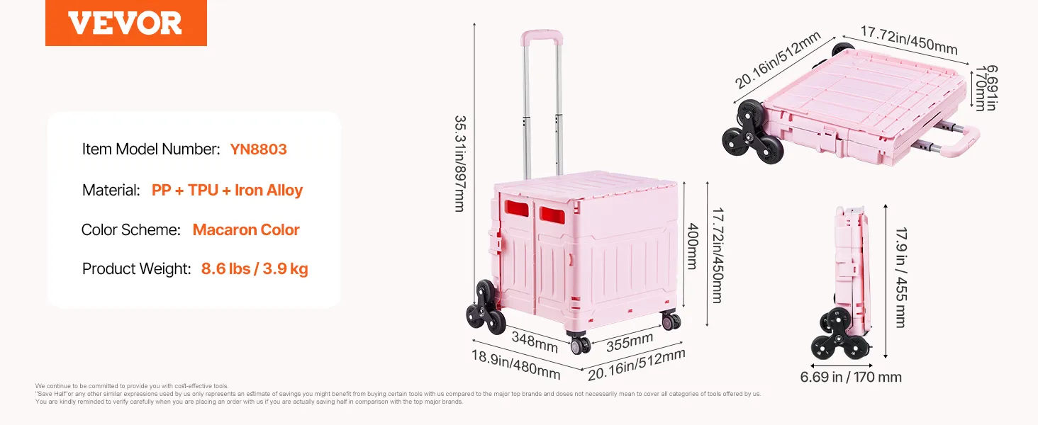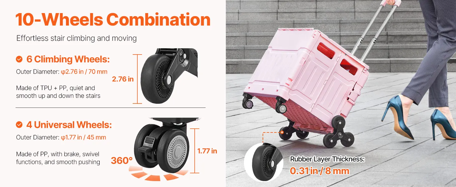 VEVOR Winkelwagen, opvouwbaar, opvouwbare aluminium winkelwagen voor traplopen met 2 wielen, draagbare trapliftstoel, noodkar, winkelwagen voor ouderen en gehandicapten