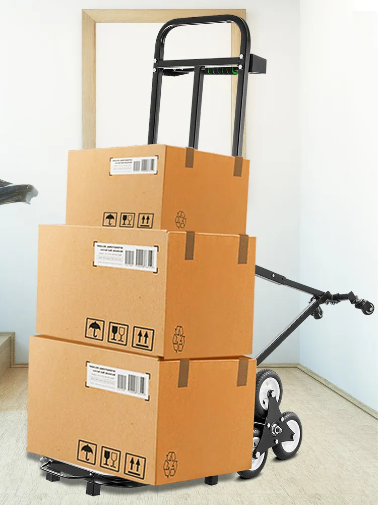 Hier bieden we u een gloednieuwe draagbare klimtrolley, die is voorzien van een paar driehoekige wielen, twee back-upwielen en twee assistentwielen. Met een inklapbare structuur is het gemakkelijk te dragen. Dit product zorgt voor een stabiele en soepele werking wanneer u een zware last de trap op en af draagt.