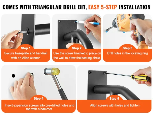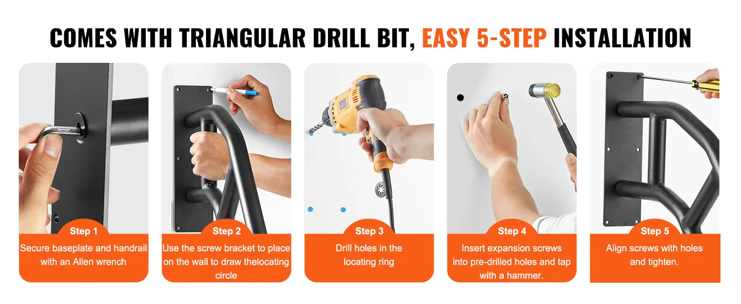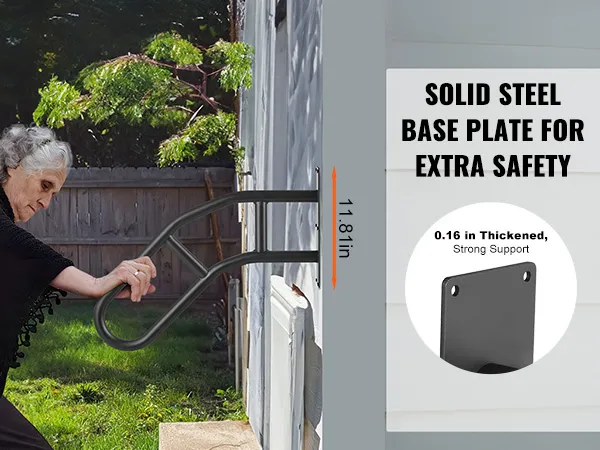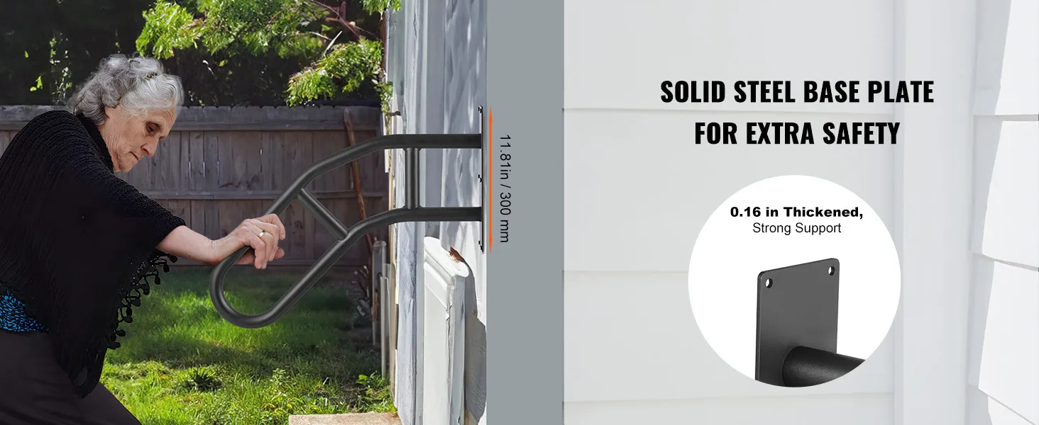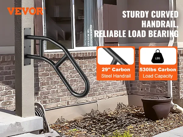 De aan de muur te bevestigen leuningen hebben een draagvermogen van 530 lbs. Onze leuningen bieden robuuste ondersteuning, waardoor ze ideaal zijn voor zwangere vrouwen en ouderen die extra stabiliteit nodig hebben. Het verdikte leuningontwerp biedt een comfortabele grip. De duurzame constructie is bestand tegen zon, regen en sneeuw. De leuning, gebouwd om lang mee te gaan, biedt continue veiligheidsbescherming.
