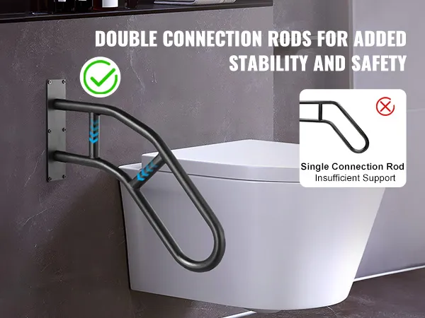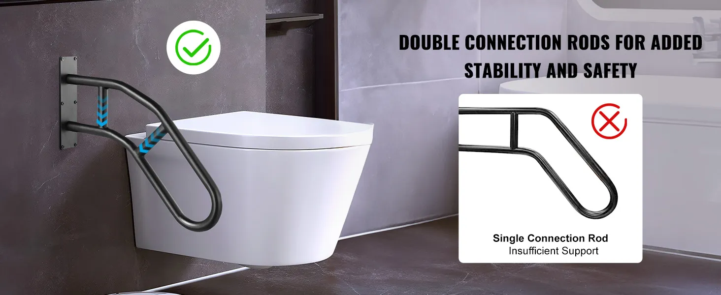 Onze buitenwandgemonteerde leuning van hoogwaardig koolstofstaal zorgt voor uitzonderlijke sterkte en een hoog draagvermogen. Uitgerust met metalen expansiebuizen, biedt het volwassenen onbeperkte ondersteuning zonder wiebelen of vervormen.