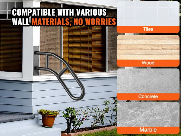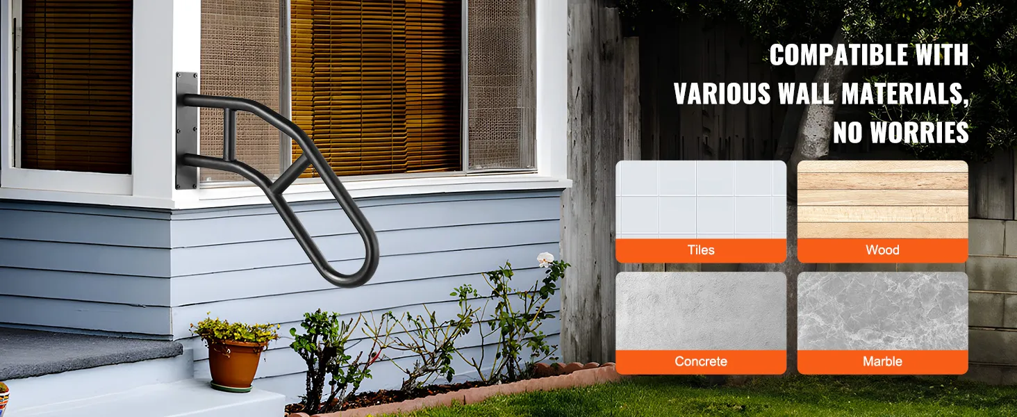Deze wandleuning voor buiten is geschikt voor verschillende wandmaterialen, waaronder tegels, hout, beton en marmer, waardoor hij extreem veelzijdig is.