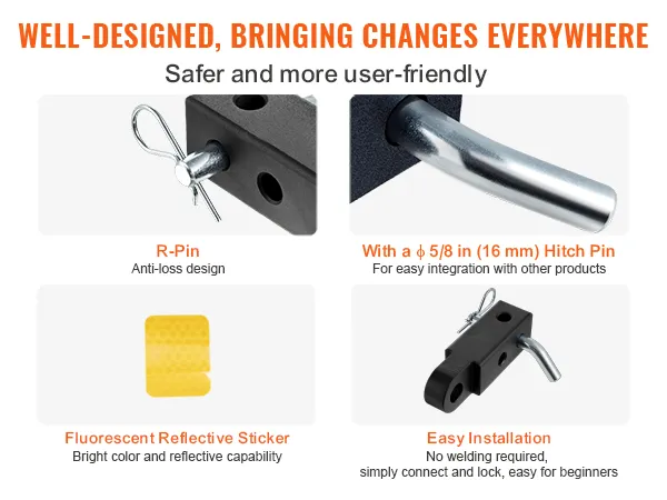 Feel secure with our shackle trailer hitch's advanced security design. Our bright reflective sticker keeps visibility high and towing safer at night.
