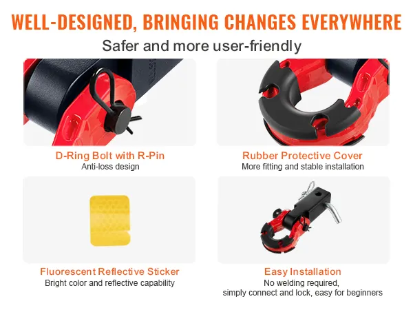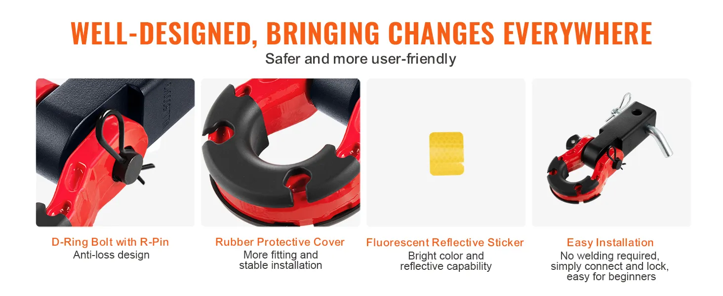 Enhanced Details: Get your shackle trailer hitch up and running in no time—no welding or complex tools needed! Just connect the shackle, and you're set. Enhanced security features like a D-ring bolt with an R-pin and a bright reflective sticker improve visibility and security at night.